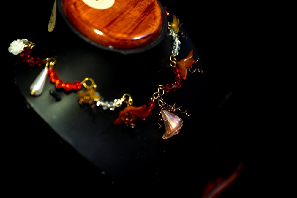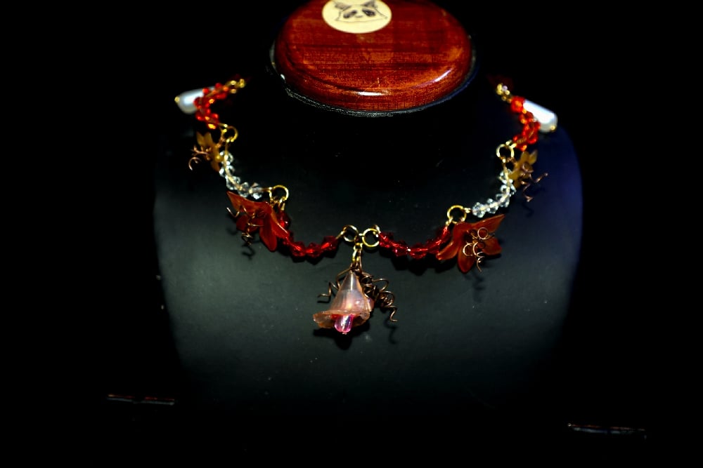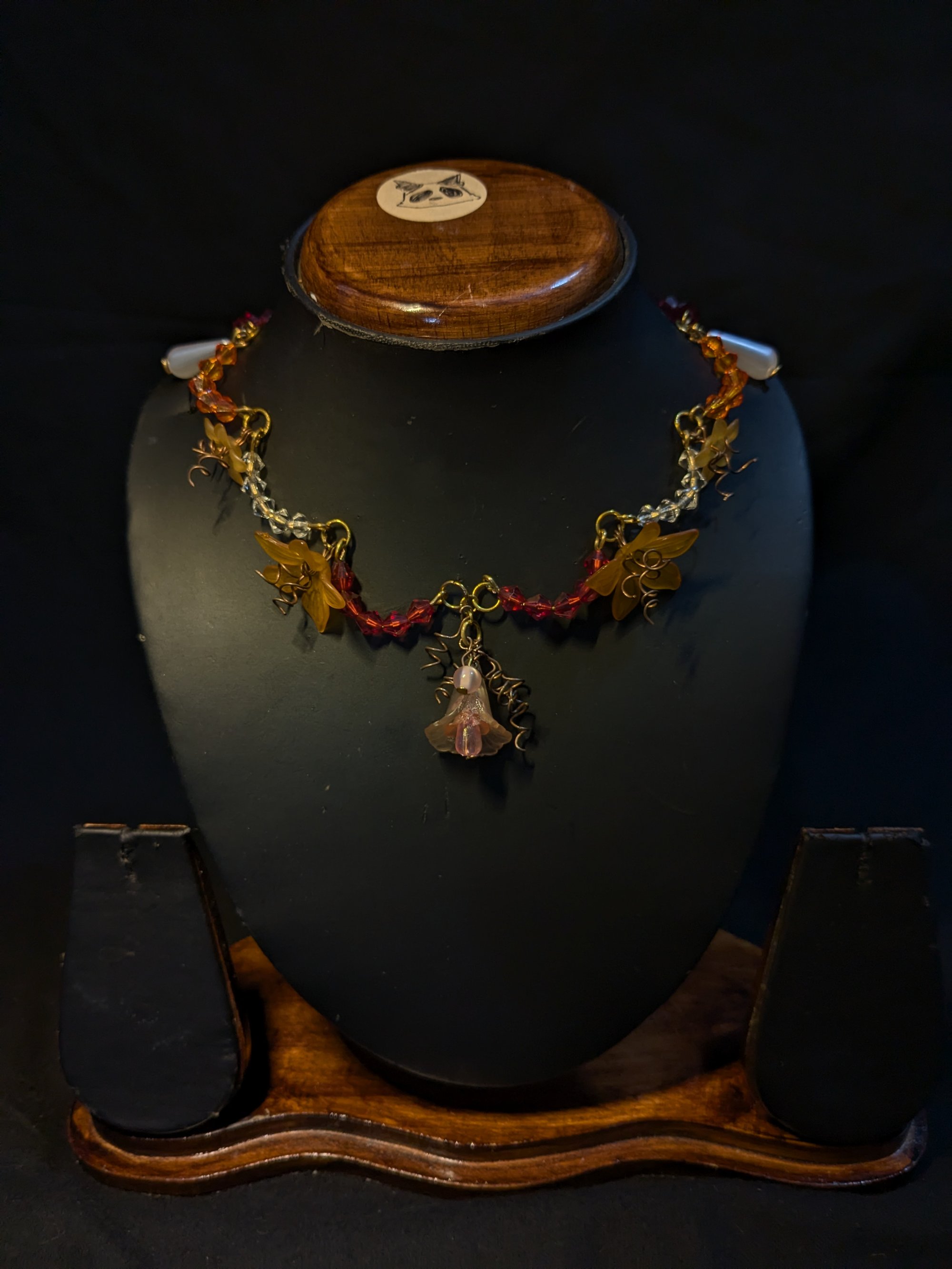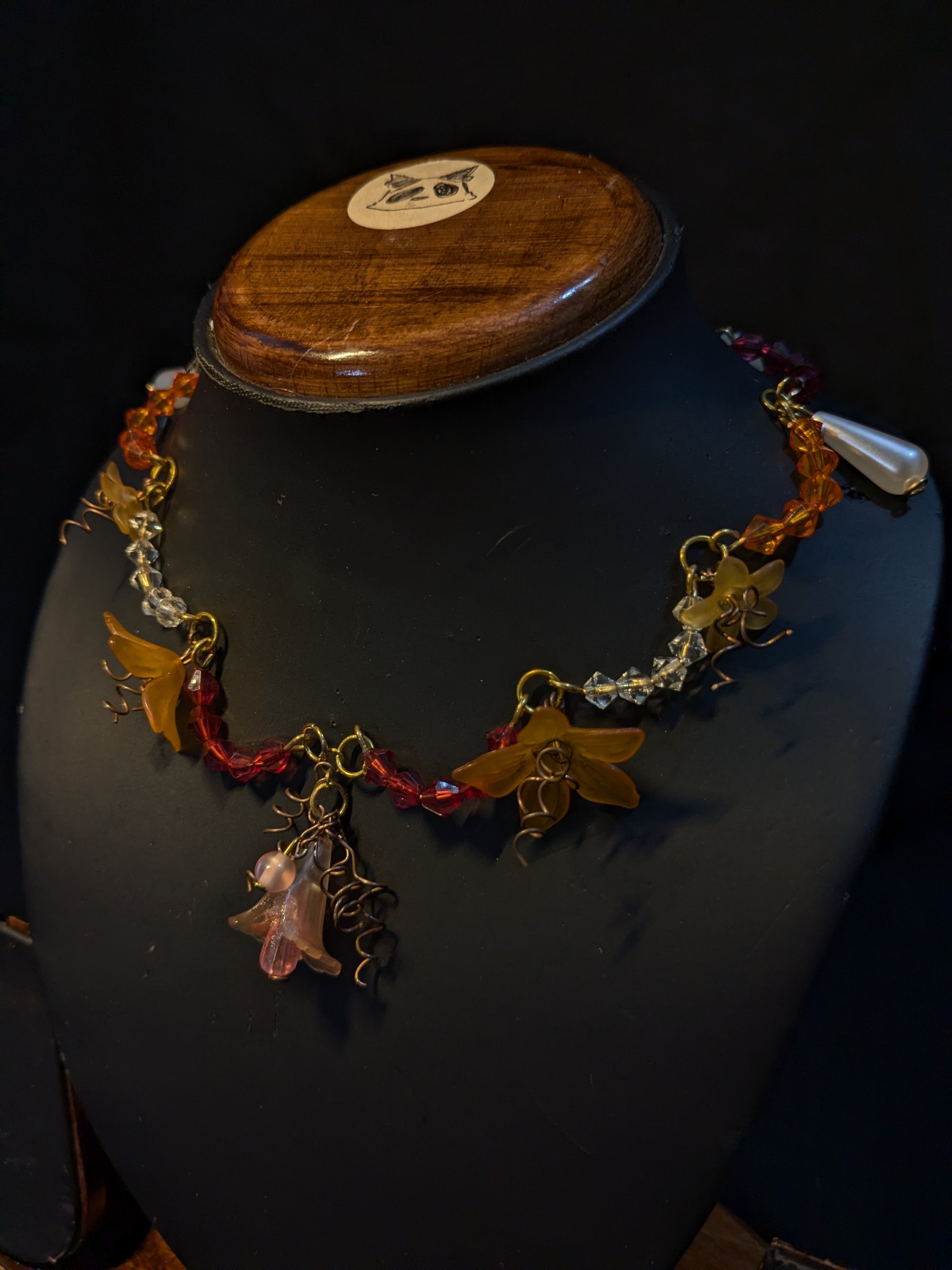 Sapphic is a nod to lesbian community, using colours of the lesbian flag and decorated with flowers. The central flower is a combination of beads to make a statement charm that definitely doesn't look like anything other than a flower..!